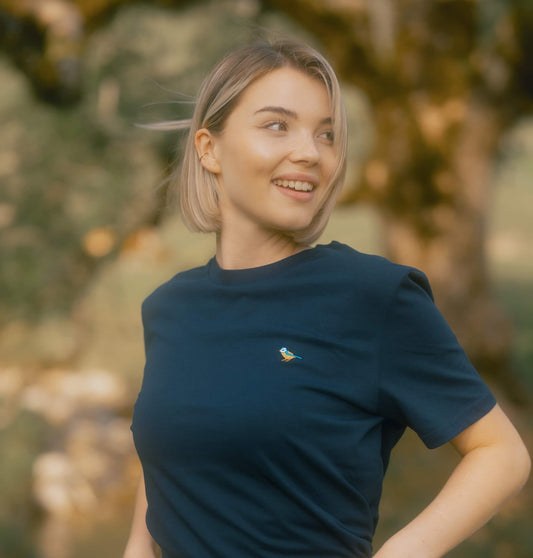 Besticktes Blaumeisen T-Shirt für Frauen | 100 % Bio-Baumwolle