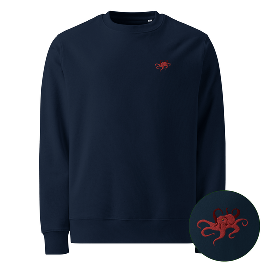 Bestickter Oktopus Unisex Bio-Pullover